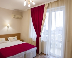 Двухместный номер с балконом. В номере: одна двуспальная кровать или две односпальные, платяной шкаф, журнальный столик, телевизор, мини холодильник, кондиционер, чайник, посуда, фен. Санузел с душевой кабиной.